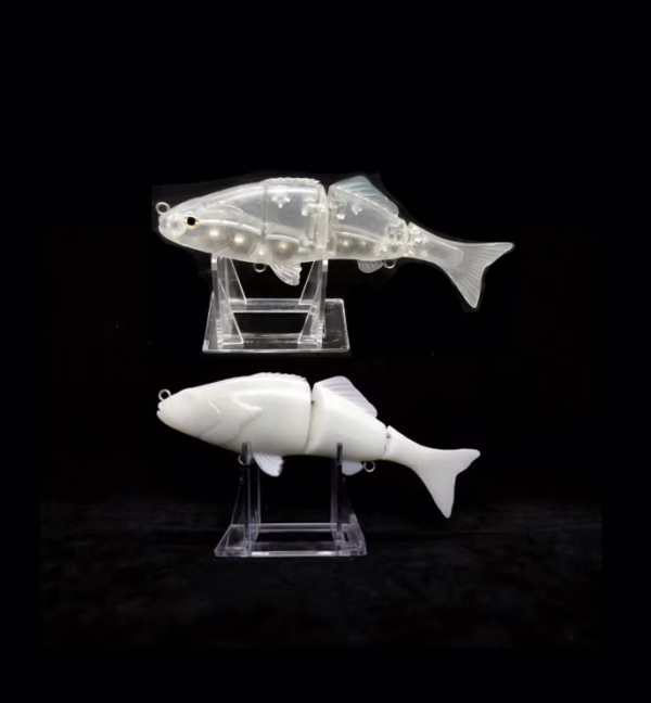 6″ Perch Unpainted Swimbait. Rattling. 1.7 oz. Three segments with metal joint. Sinking. Hard tail. Add on our 6.5mm eyes, split rings and #2 treble hooks and all you will need is paint.
