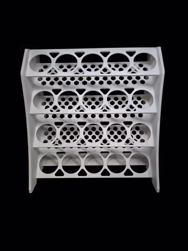 Excellent paint stand that holds up to 20 standard 2oz bottles of airbrush paint such as Createx. Stand is designed to snap together and can be glued with standard super glue for added joint strength if desired.