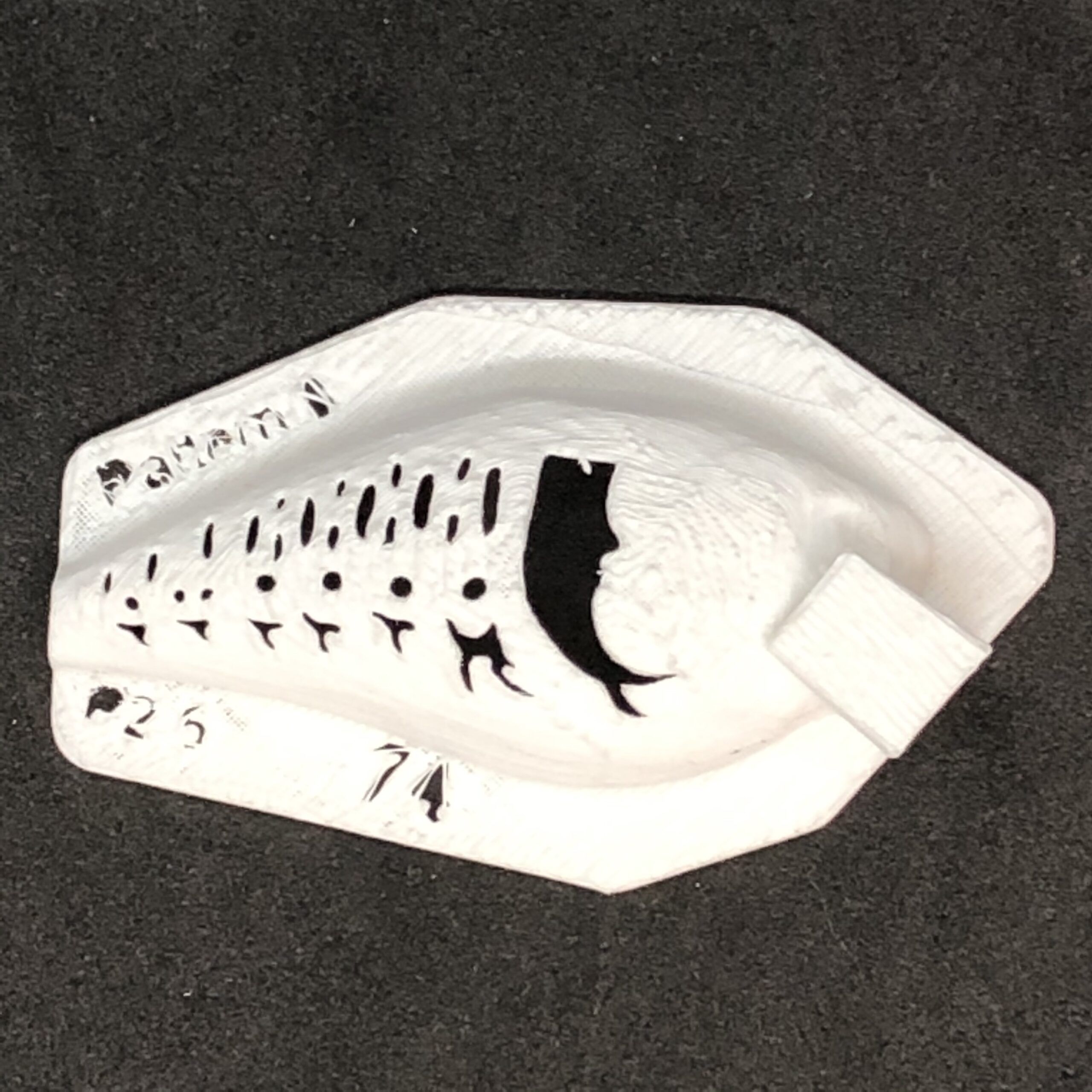 LC2.5 Pattern 8 Stencil is a great tool for easily airbrushing patterns onto your lures. This stencil will fit premium and standard/economy Lucky Craft 2.5 square bills copies.