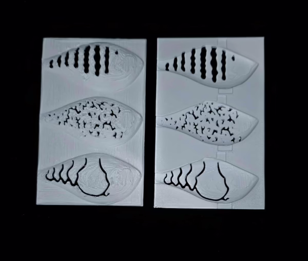 2-3/4″ Riprap 3n1 Stencil. Three stencils in one, you can paint a bluegill, crappie and craw pattern. This is a great tool for easily airbrushing patterns onto your lures. This stencil fits our 2-3/4″ (70mm) Riprap lure blank.